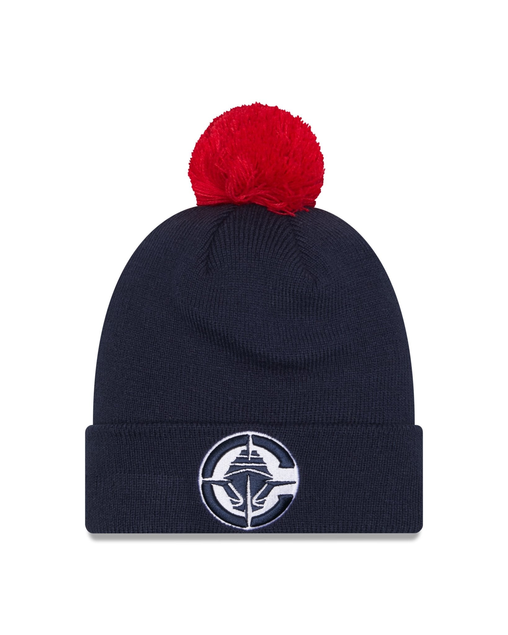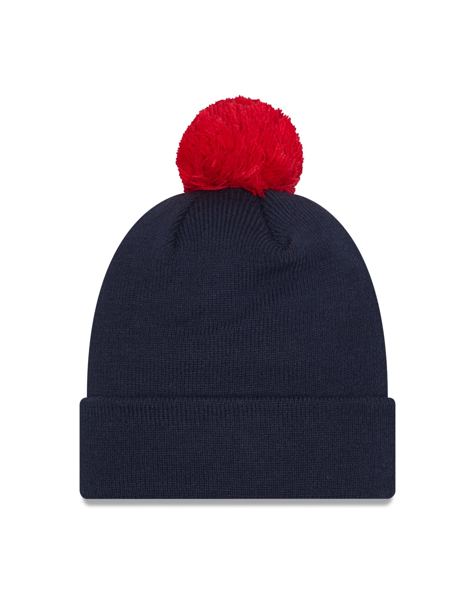 Stay warm while showing your Clippers pride with this classic Pom Knit Beanie from New Era. Featuring a navy knit beanie with a bold red pom on top, this beanie delivers a timeless look. The front cuff displays the embroidered LA Clippers logo in white and navy, while the back features the New Era flag in red for an authentic finish.