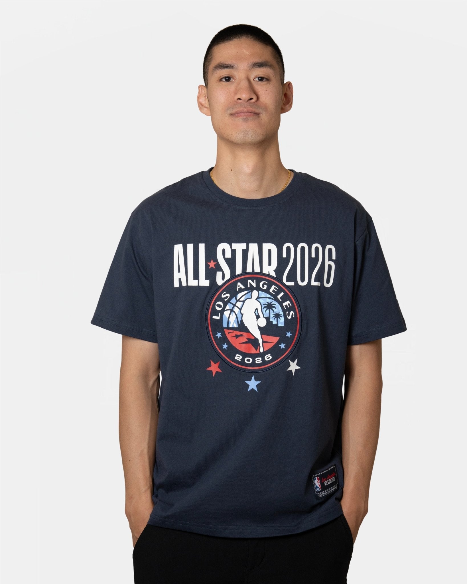 Celebrate the 2026 All-Star stage in the City of Angels. This tee features a bold “All-Star 2026” front graphic with a custom Los Angeles crest showcasing palm trees, basketball energy, and West Coast flair. Finished with a clean LA hit on the sleeve and official NBA woven label near the hem.