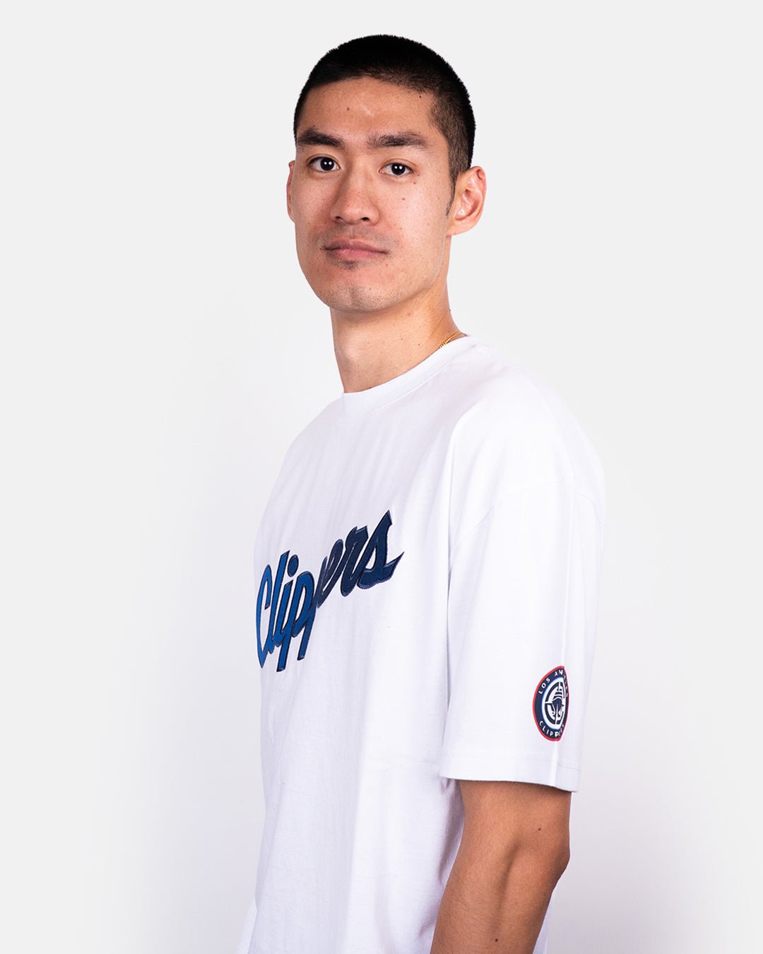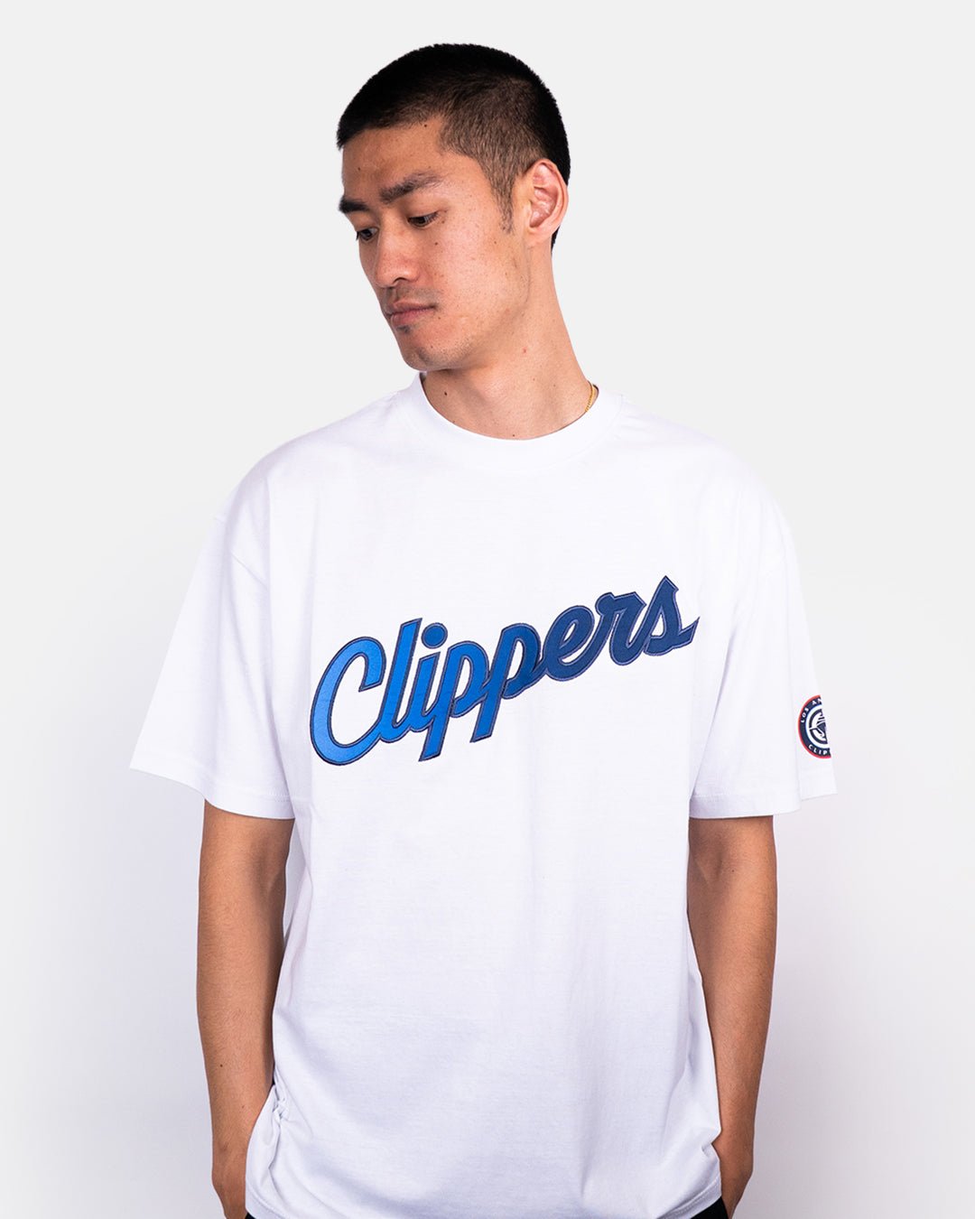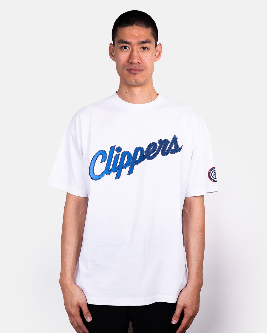 Clean, classic, and effortlessly on-brand. The Clippers Ombre Logo Oversized Tee delivers that premium, everyday look with a bold varsity-inspired script across the chest and a detailed team patch on the sleeve. Made from soft, breathable cotton with an oversized fit that drapes just right, this tee nails modern streetwear energy while keeping it undeniably Clippers.
