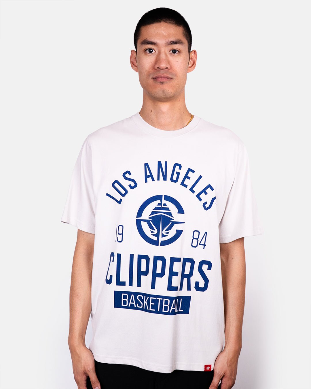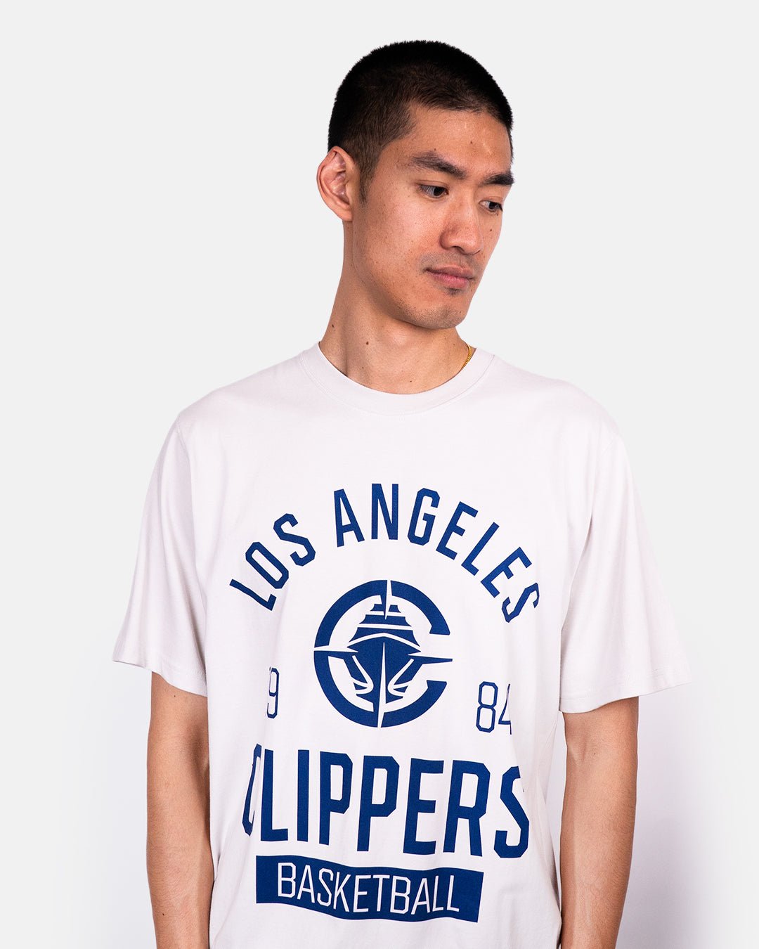 A clean, modern take on Clippers heritage — built in that Duke-style oversized tee silhouette. This light-blue top features the updated ship-in-a-C crest, arched “Los Angeles” text, and the team’s founding year for a timeless collegiate look. Soft cotton and a relaxed, draped fit make it perfect for everyday wear, whether you’re heading to the arena or keeping it casual.
