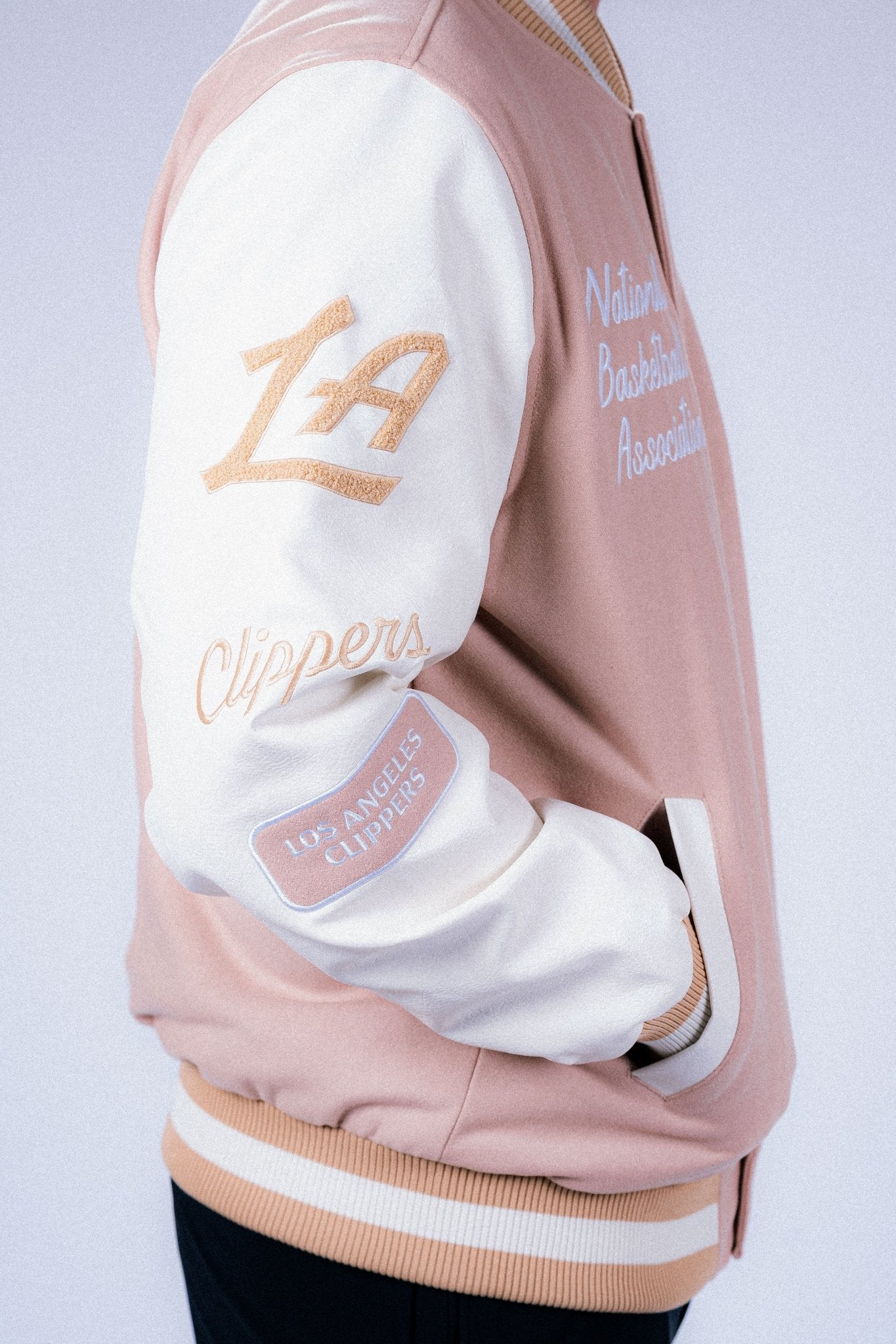 Elevate your outerwear game with this Los Angeles Clippers Neutral Varsity Jacket. Featuring premium embroidered details, contrast sleeves, and a clean tonal colorway, this jacket delivers a classic varsity look with modern Clippers pride.