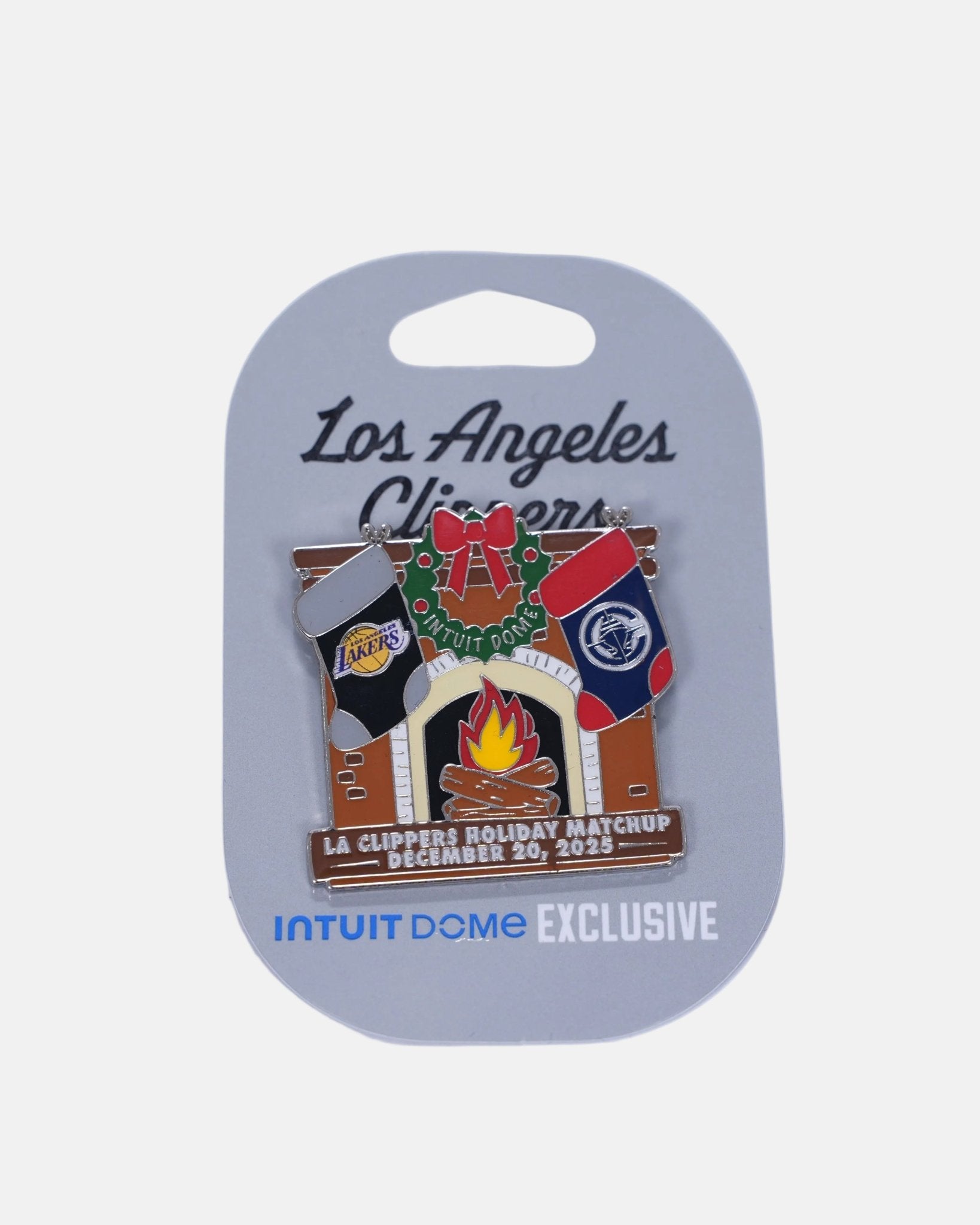 Bring the holiday spirit to LA basketball with the Holiday Hoops LA Collector Pin, celebrating the December 20 Lakers vs Clippers matchup. Designed with festive accents and bold enamel detailing, this limited-edition pin blends Christmas energy with one of the league’s most heated rivalries.