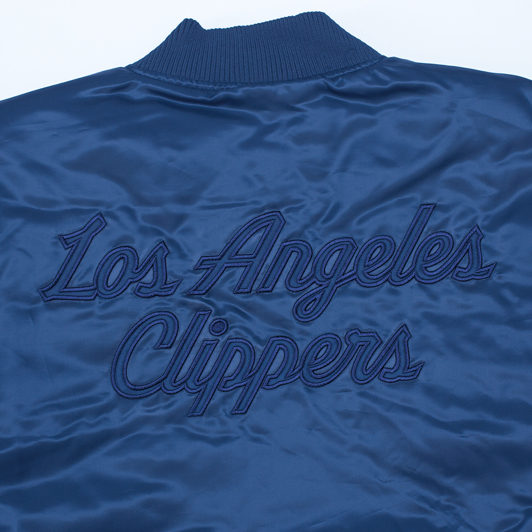 This navy Cropped Varsity Jacket is a must have. Featuring our new logo on the front and our script logo on the back, it’s perfect for watching the game at Intuit Dome or at home. Stay stylish all year round with this trendy varsity jacket.