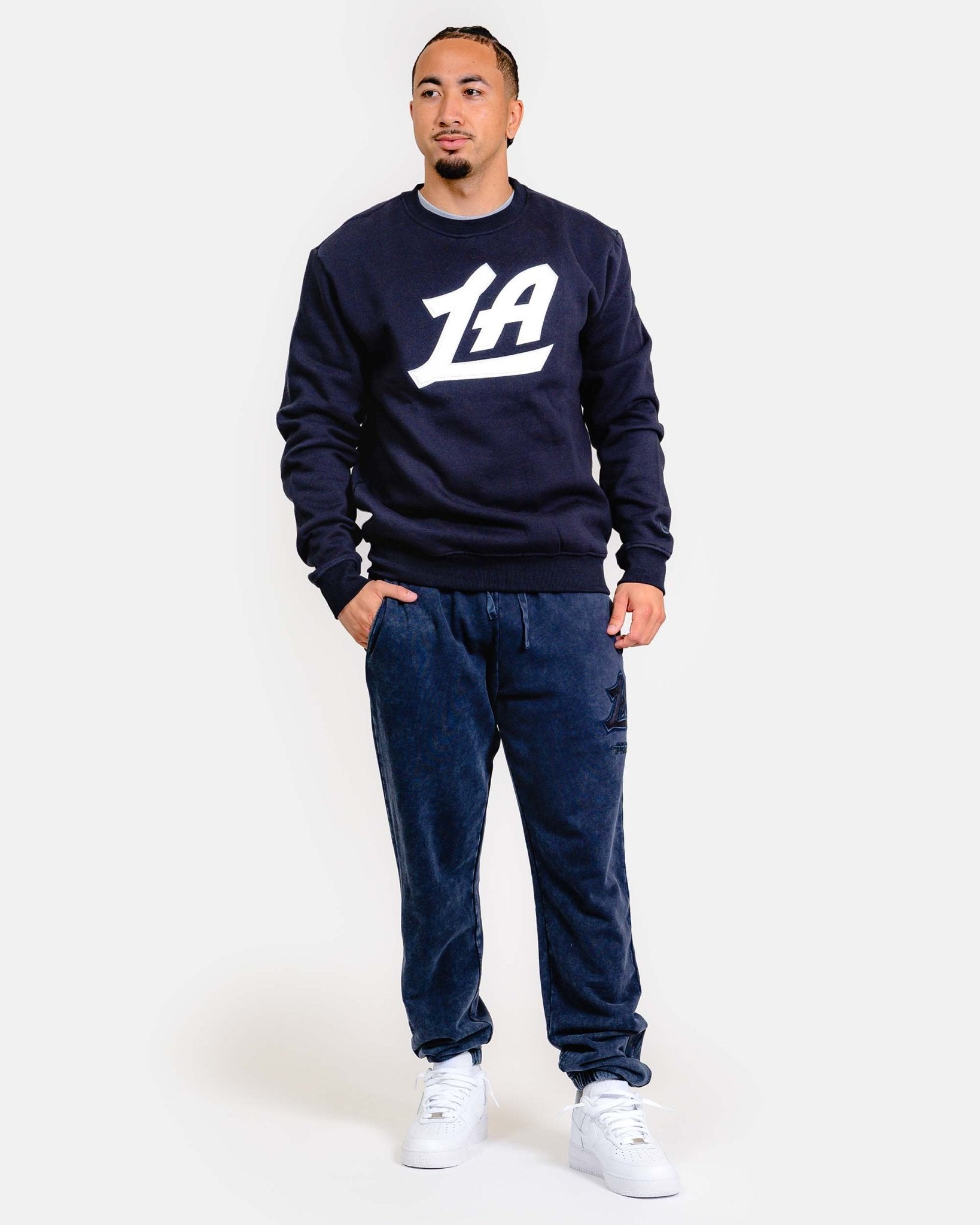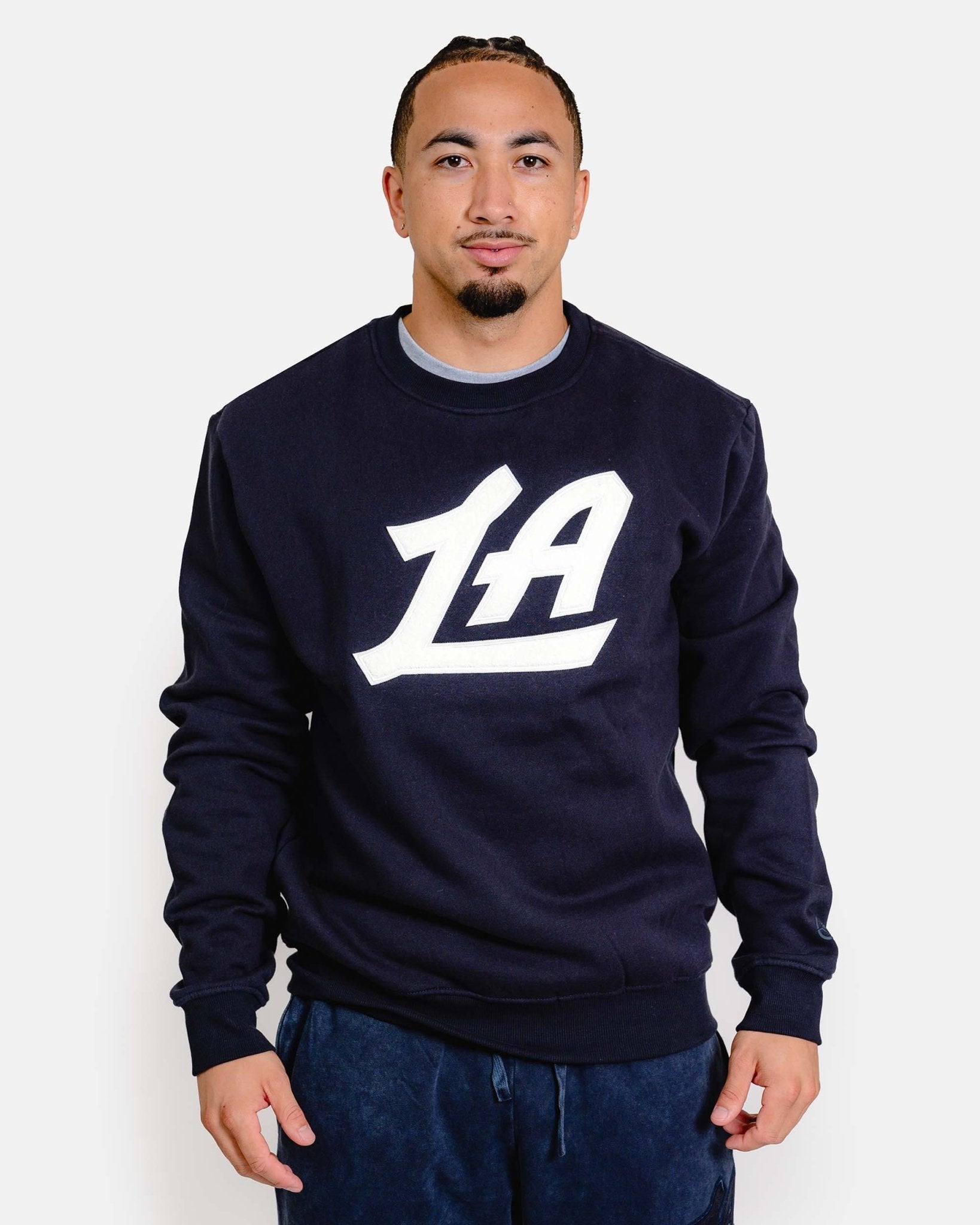 Stay comfortable while repping your team in this navy Clippers crewneck. Featuring a bold white LA logo on the chest and classic ribbed trim, it’s perfect for layering on game days or casual wear.