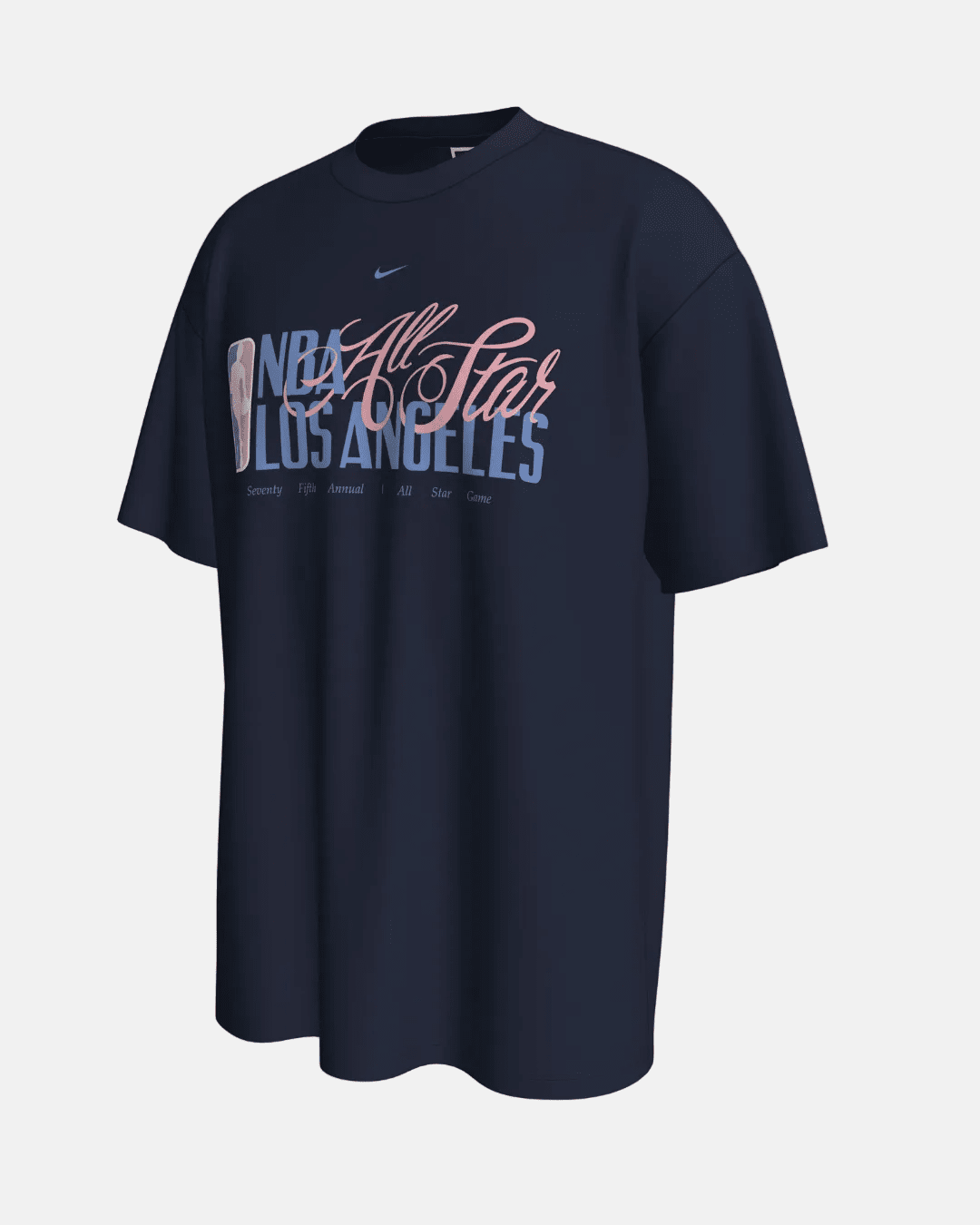 Command the night with this "Midnight" edition of the Stacked Script graphic tee from the 2026 NBA All-Star collection. This heavyweight piece features the same dynamic typographic mashup as its sail-colored counterpart, with "LOS ANGELES" block lettering layered under elegant "All-Star" script and the NBA logoman. The deep navy blue base provides a sophisticated, high-contrast look that highlights the commemorative "Seventy Fifth Annual" text below the main graphic. Built with a signature boxy silhouette and dropped shoulders, it combines historic milestone branding with modern street style.